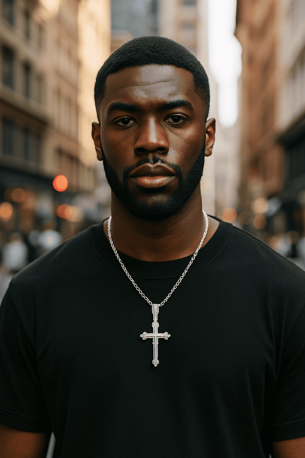 This iced out cross pendant brings bold energy and divine drip to your fit. Designed to stand out and catch light from every angle. It’s a powerful piece for anyone who moves with style and purpose.