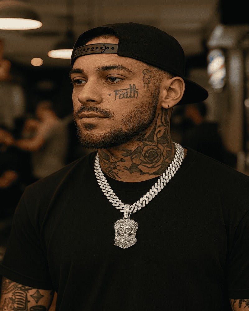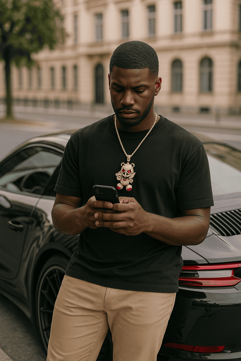 This pendant is pure heat! The iced out design, bold red accents, and street savvy vibe make it a head turning piece that demands attention. It’s the perfect way to flex your style and bring big energy to any fit.