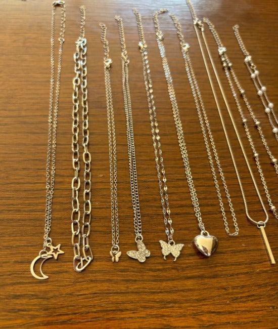 With 13 unique chains in one set. Featuring hearts, stars, butterflies, and pearls. You can mix, match, and layer to create a new look every day. It's like having a full jewelry wardrobe in one box.