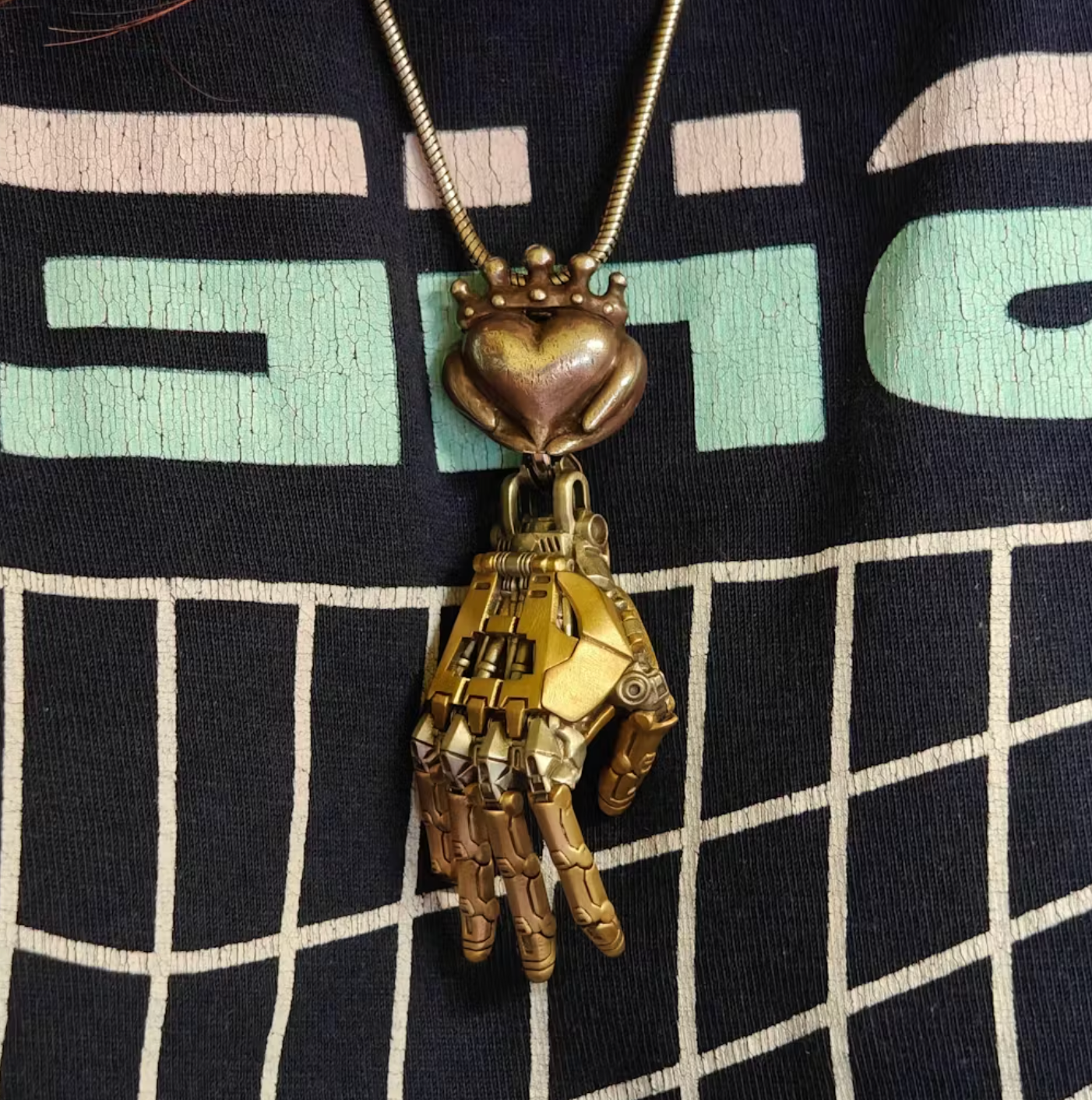 Turn every outfit into a statement of power with the GoldStrike Gauntlet Pendant. Precision cast from durable, aerospace grade alloy, this futuristic hand showcases a sleek silver chassis accented by a single, eye catching the gold finger. Instantly drawing attention to your bold taste. Micro etched details and articulated knuckle lines mimic real cyber tech engineering, making it feel like a treasure straight out of a sci-fi arsenal. Despite its rugged look, the pendant is comfortably lightweight, hanging from a matching, tarnish resistant chain that won’t snag or fade.