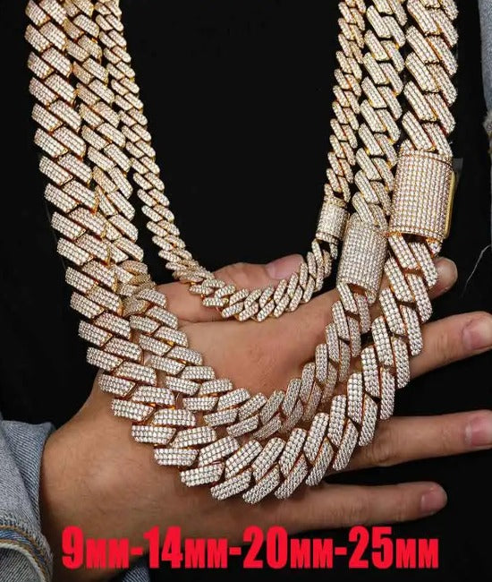 Turn heads with this bold, fully iced Cuban link chain. With options from 9mm to 25mm, it's your statement piece, your flex, and your daily essential all in one. Shine your way.