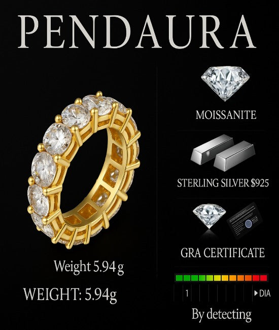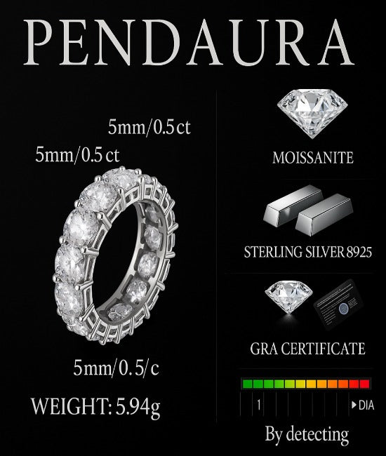Crafted with brilliant 5mm (0.5ct) moissanite stones, this eternity band delivers lasting shine that rivals diamonds. Perfect for daily wear or special occasions.